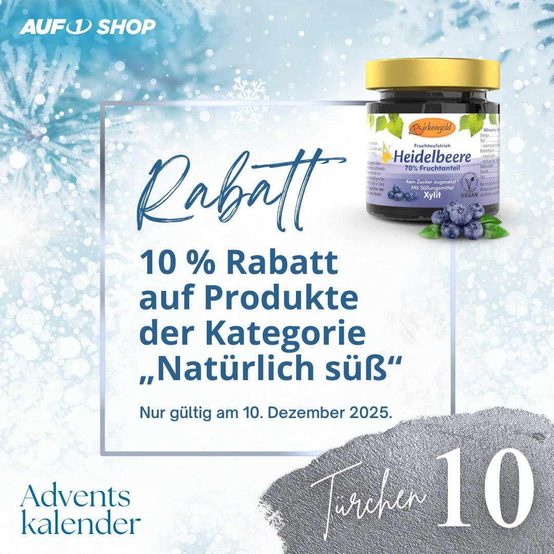 Nur heute am 10. Dezember erhalten Sie 10 % Rabatt auf alle Produkte in der Kategorie „Natürlich süß“ im AUF1 Shop. Ob aromatischer griechischer Honig oder vielseitige Birkenzucker-Produkte – bei uns finden Sie natürliche Süße in bester Qualität und echte Alternativen zu Industriezucker.