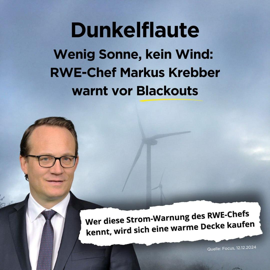 An der Börse explodieren die Preise, weil Solar- und Windenergie zu wenig Strom produzieren. Bei schlechtem Wetter drohen Ausfälle, am ehesten am frühen Abend, wenn es kalt wird. RWE-Chef Markus Krebber warnt: „Das Stromsystem ist auf Kante genäht.“ Man sehe aktuell, was passiere, „wenn wir Kapazitäten abschalten und keine Rückfallebene für die erneuerbaren Energien bereitstellen“.