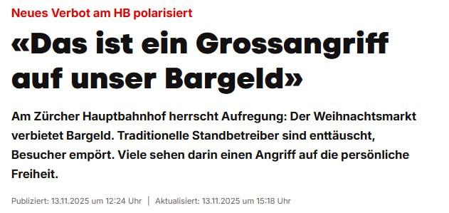 Der Weihnachtsmarkt in Zürich will in diesem Jahr an den Ständen ausschließlich Kartenzahlungen akzeptieren. Die Regel gilt ohne Ausnahme: Wenn ein Standbetreiber auch nur Bargeld annehmen sollte, droht ihm eine Buße von 500 Franken, https://t.me/auf1tv/16639">AUF1 berichtete.