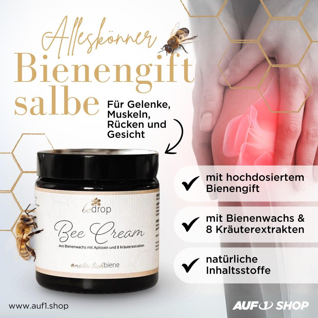 Die Bee Cream enthält hochdosiertes Bienengift, Bienenwachs und acht natürliche Kräuterextrakte (z. B. Menthol und Eukalyptus). Die Kombination ist ein Allrounder für Haut, Muskeln und Gelenke. So kann sie beispielsweise wohltuend pflegend, schützend und unterstützend bei Schwellungen, Insektenstichen und Rötungen eingesetzt werden, da sie einen kühlenden Effekt hat. Doch auch für Anti-Aging, Narbenpflege oder bei Unreinheiten und Akne ist die Bee Cream von Vorteil.
