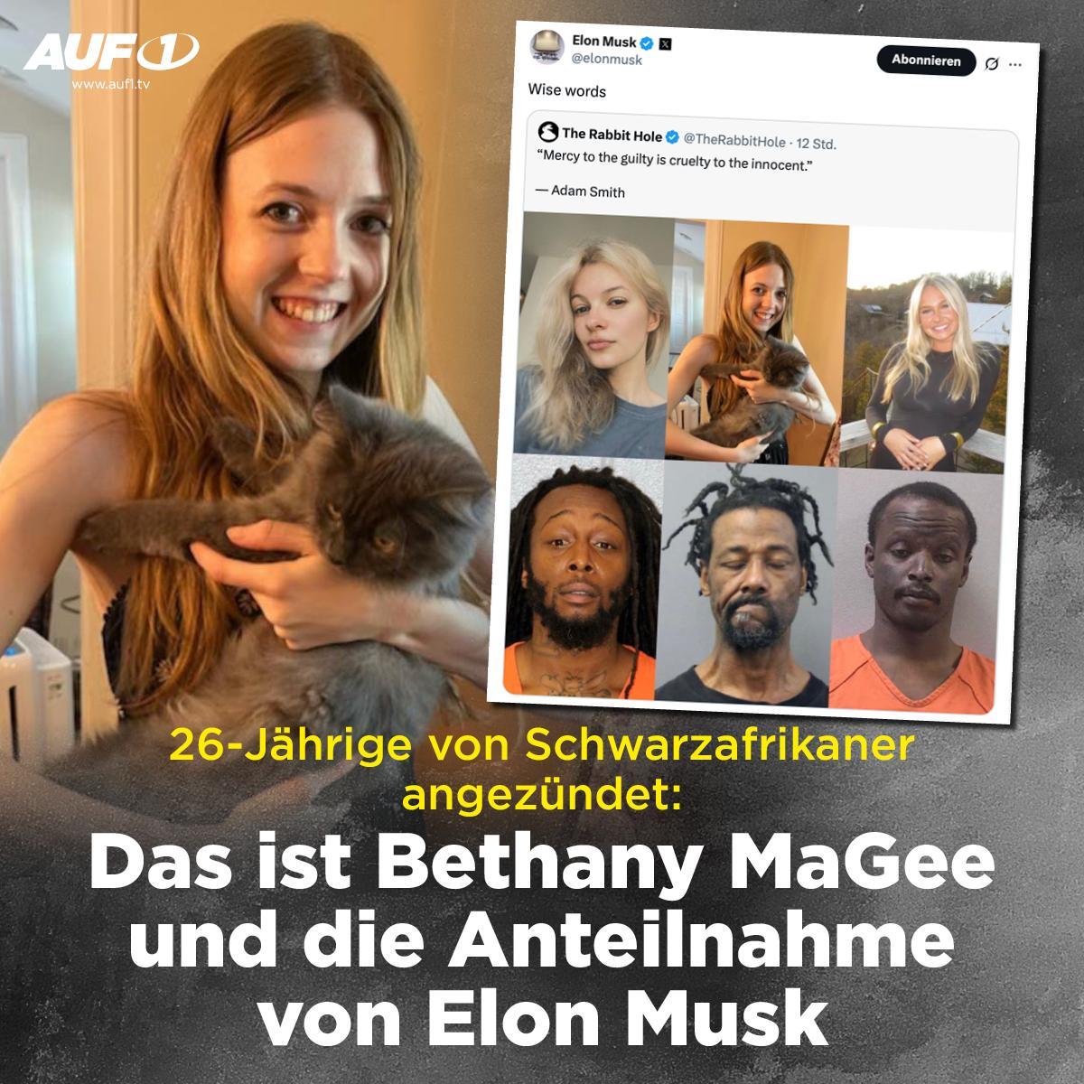 Der Schock und die Wut über den brutalen Brandanschlag auf die 26-jährige Bethany MaGee in der Chicagoer U-Bahn durch den schwarzen Schwerkriminellen Lawrence Reed, AUF1 berichtete, sitzen immer noch tief. MaGee befindet sich nach der Terror-Tat weiterhin in kritischem Zustand. Sie erlitt schwere Verbrennungen an Kopf und Körper, wobei 60% ihrer Körperoberfläche betroffen ist. Sie kämpft weiterhin um ihr Leben!