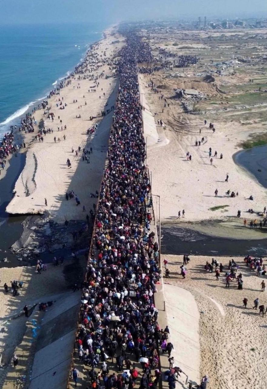 Weiters wird berichtet, dass man ganze Familien gesehen hat, „die in Richtung Gaza-Stadt laufen. Man sah Kinder, Frauen, ältere Menschen, Autos, Lieferwagen, Eselskarren, beladen mit Möbeln. Familien haben ihre provisorischen Zelte abgebaut, um sie mitzunehmen und sie über den Ruinen ihrer zerstörten Häuser in Gaza-Stadt wieder aufzubauen.“