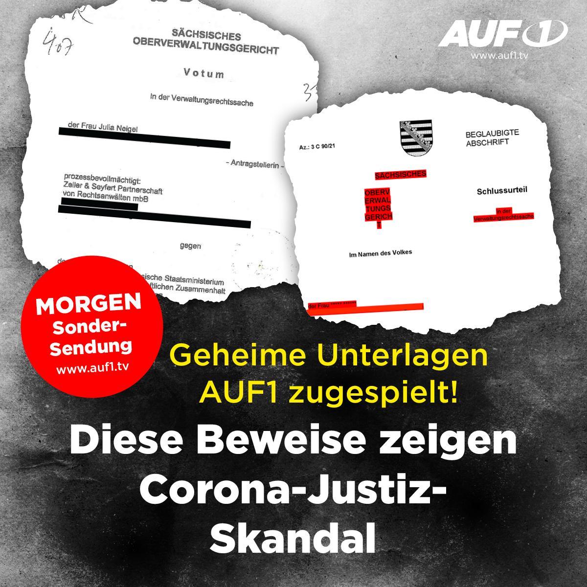 Explosiv‼️AUF1 beweist Justizskandal ++ Geheime Unterlagen zugespielt ++ Corona-Urteil vor Prozess geschrieben ++ Morgen Sondersendung