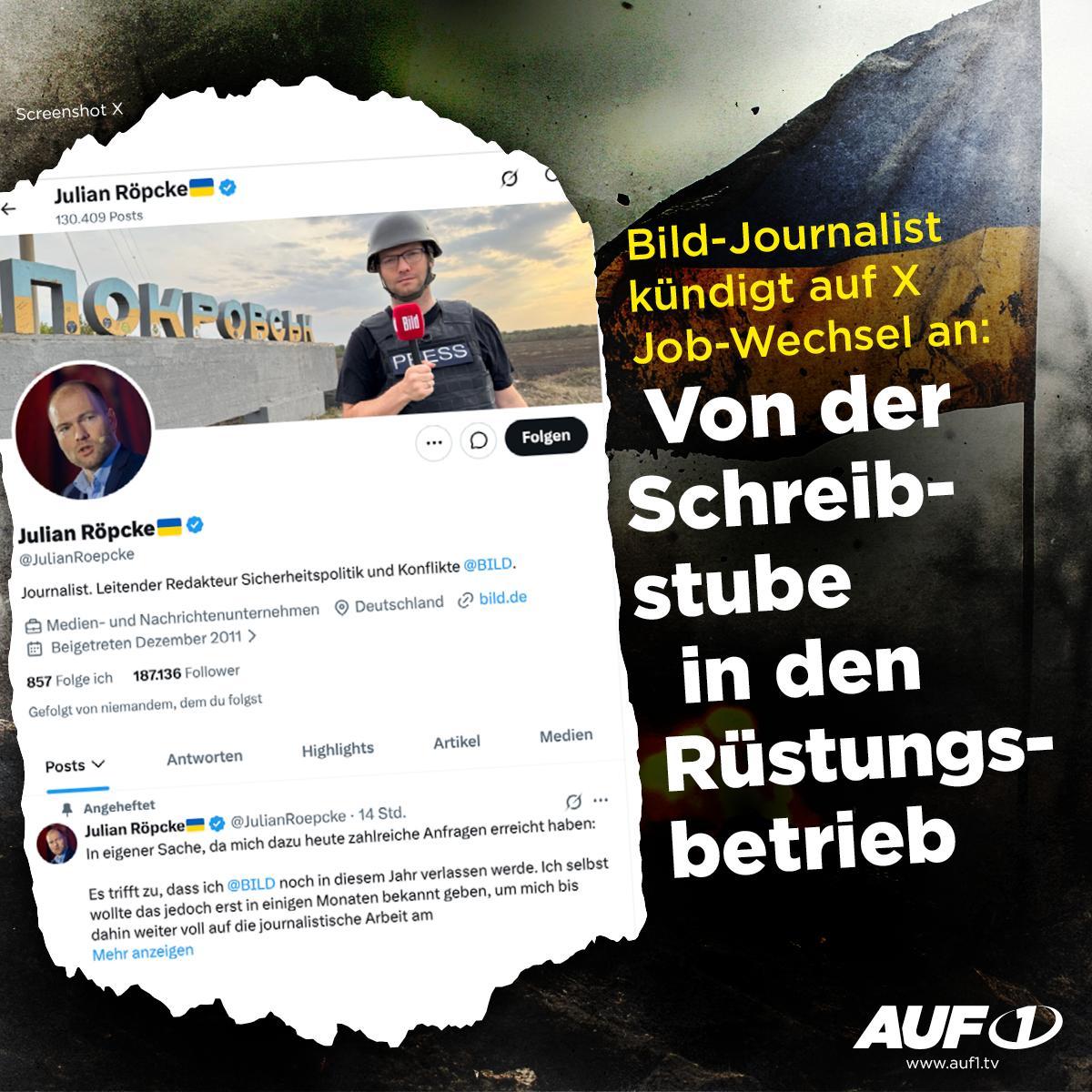 Mehr als 11 Jahre lang arbeitete der Journalist Julian Röpcke bei der Bild. Als leitender Redakteur für Sicherheitspolitik und Konflikte, wie er auf seinem X-Kanal schreibt. Nun wechselt er von der Schreibstube in ein deutsch-ukrainisches Drohnenbau-Unternehmen, welches „zu den größten Lieferanten für die Ukraine gehört“, so Röpcke.