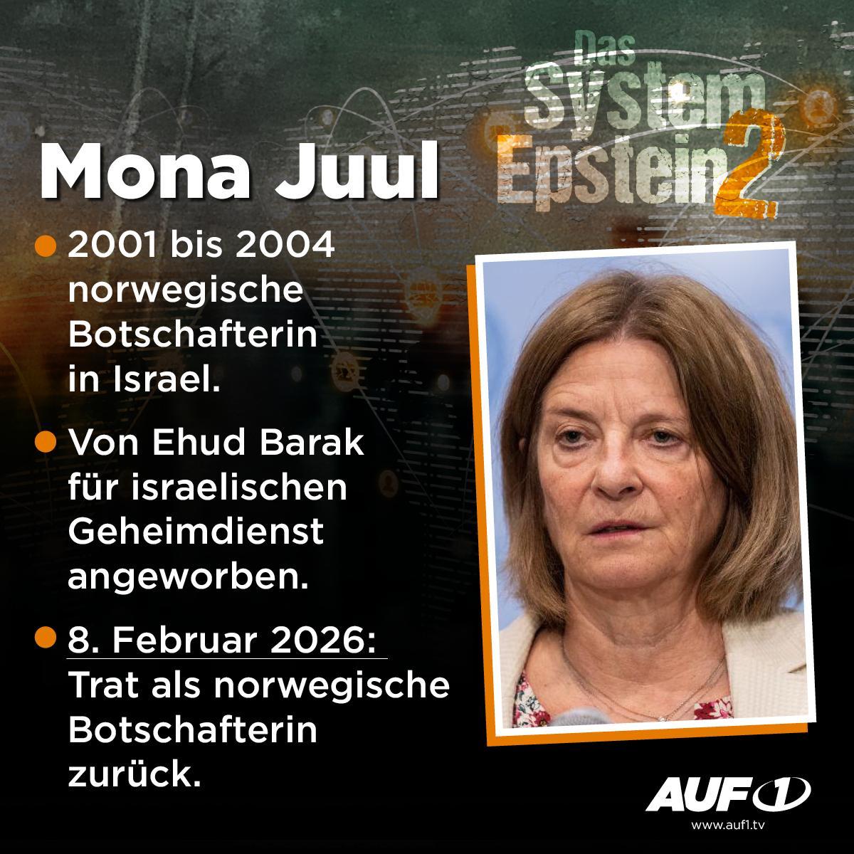 Die Fülle an über drei Millionen veröffentlichten Epstein-Akten weist auf Spuren des „Deep State“ hin. Immer mit Israel und dem Mossad in Verbindung! So auch bei der norwegischen Botschafterin Mona Juul. Sie musste aufgrund der aufkommenden Beweislage in den Epstein-Akten zurücktreten. „Sie hatte die gleichen Mossad-Verbindungsleute wie Epstein“, sagt AUF1-Chef Stefan Magnet nach seiner erneuten intensiven Recherche in der Akten-Flut. Sie wurde vom ehemaligen israelischen Premierminister Ehud Barak für den Mossad angeworben.