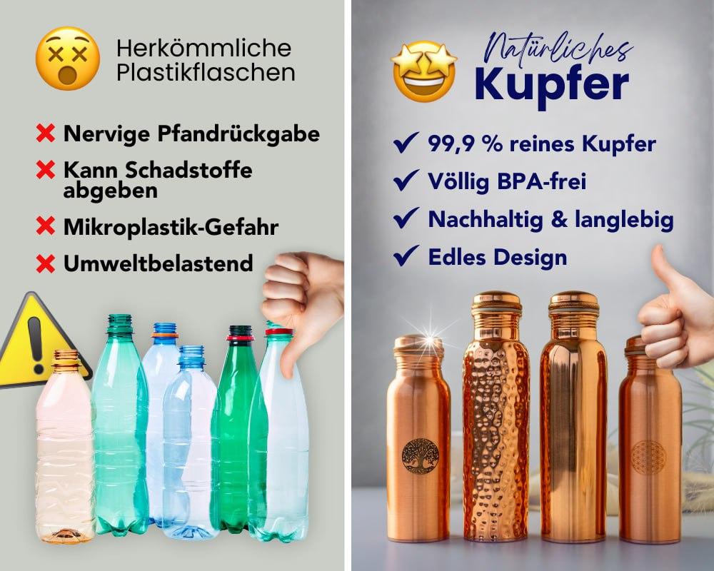 Kupfer wird seit jeher für seine vitalitätsfördernden Eigenschaften geschätzt. Schon in der ayurvedischen Tradition wurde Wasser über Nacht in Kupfergefäßen aufbewahrt. So entsteht Trinkwasser ganz ohne Plastik oder Chemie.