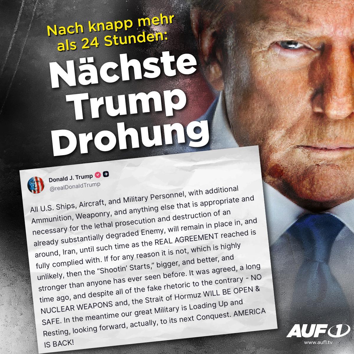 Das Waffenstillstandsabkommen ist seit knapp mehr als 24 Stunden in Kraft, und schon droht der US-PrĂ€sident Donald Trump erneut dem Iran. Auf seiner Social-Media-Plattform Truth Social fordert er den Iran auf, sich an die âechte Vereinbarung vollstĂ€ndig zu haltenâ, ansonsten âgeht das âSchieĂenâ wieder los, und zwar gröĂer, besser und stĂ€rker als alles, was man jemals zuvor gesehen hat. Es wurde schon vor langer Zeit vereinbart, und trotz aller gegenteiligen Fake-Rhetorik gilt: KEINE ATOMWAFFEN, und die StraĂe von Hormus WIRD OFFEN UND SICHER BLEIBEN.â