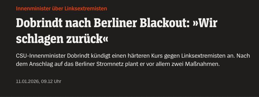 Über fünf Tage hatten rund hunderttausend Berliner keinen Strom. Zum Anschlag auf das Elektrizitätsnetz bekannte sich eine „Vulkangruppe“ aus dem linksextremen Spektrum.