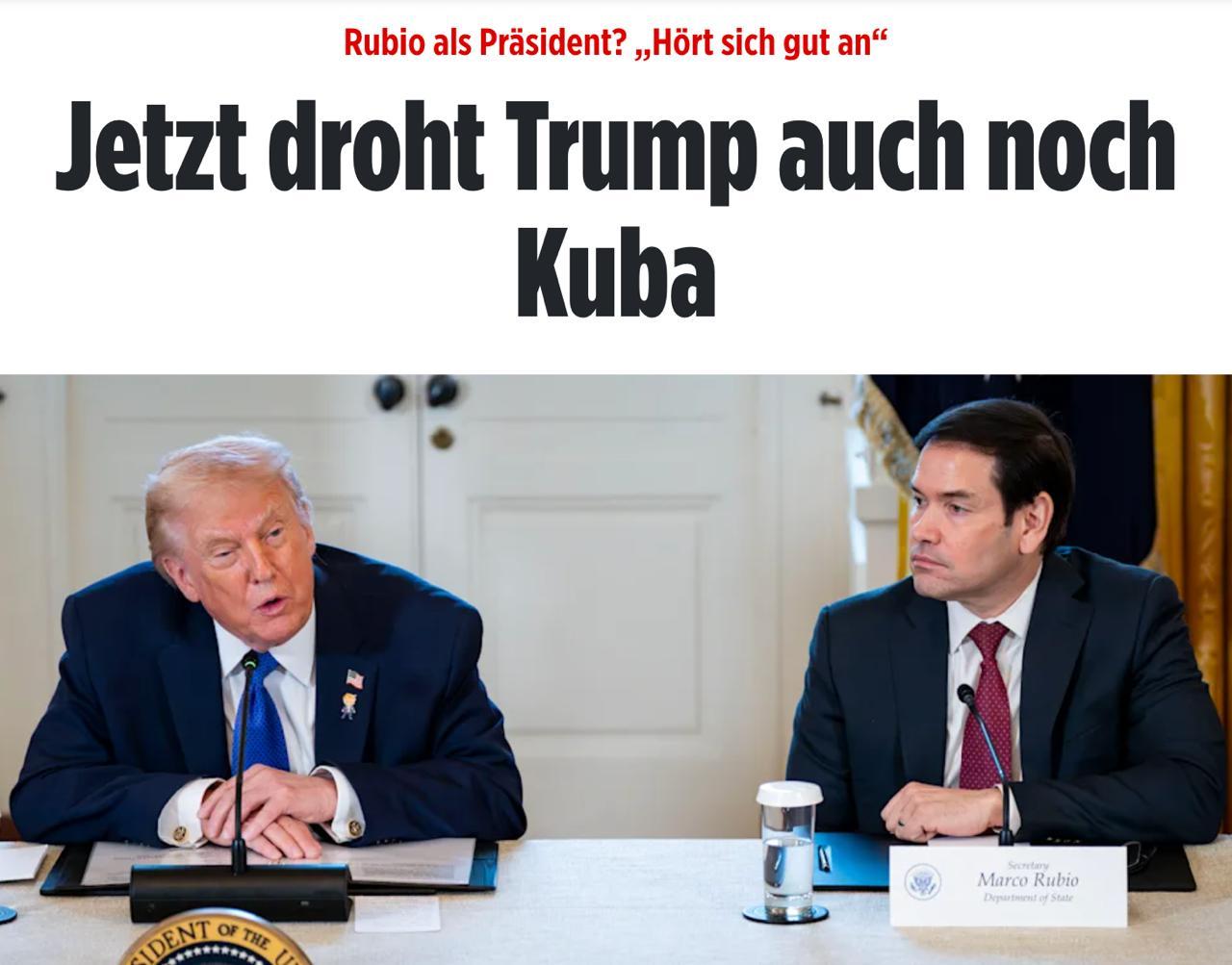 Auf einen Kommentar, der den kubanischstämmigen US-Außenminister Marco Rubio als neuen Präsidenten von Kuba empfahl, antwortete Trump selbst: „Da hätte ich nichts dagegen.“