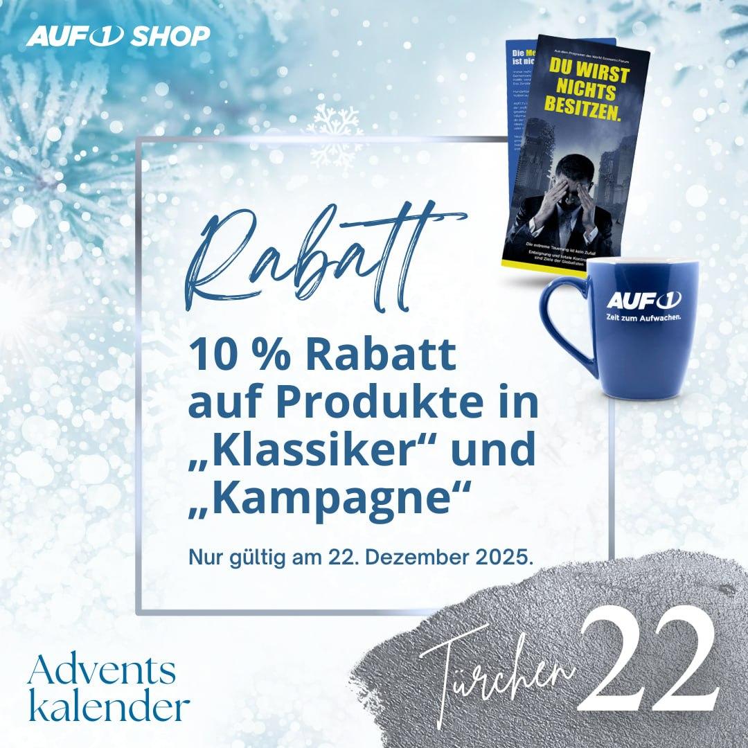 Nur heute im AUF1 Shop Adventskalender: 10 % Rabatt auf alle Produkte in „Klassiker“ und „Kampagne“ – ...