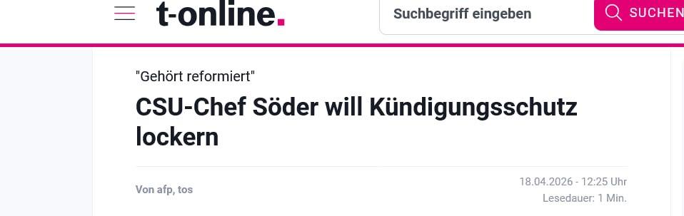 CSU-Chef Markus Söder hat von der Bundesregierung umfassende Reformen des Arbeitsrechts gefordert - und die würden für Arbeitnehmer schmerzhaft werden. Unter anderem müsse der Kündigungsschutz gelockert und die Lebensarbeitszeit erhöht werden. Ebenso sollen Datenschutzvorgaben, Dokumentationspflichten und Klagemöglichkeiten von Nichtregierungsorganisationen zurückgebaut werden. Söder sprach in diesem Zusammenhang von einer Belastung für die Wirtschaft. Für das von Bundesgesundheitsministerin Nina Warken geplante Ende der kostenlosen Mitversicherung von Ehepartnern zeigte Söder sich offen und wies darauf hin, dass Reformen auch Belastungen für die Versicherten mit sich bringen könnten.