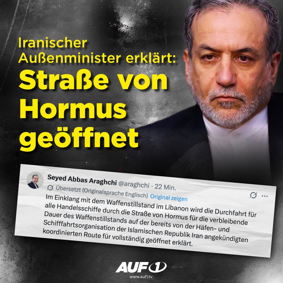 Paukenschlag in der Straße von Hormuz. Angesichts des vereinbarten Waffenstillstands zwischen Israel und dem Libanon erklärt der iranische Außenminister Seyed Abbas Araghchi die Straße von Hormus für geöffnet. Auf seinem X-Kanal schreibt er, dass „die Durchfahrt für alle Handelsschiffe durch die Straße von Hormus für die verbleibende Dauer des Waffenstillstands auf der bereits von der Häfen- und Schifffahrtsorganisation der Islamischen Republik Iran angekündigten koordinierten Route vollständig geöffnet“ ist.