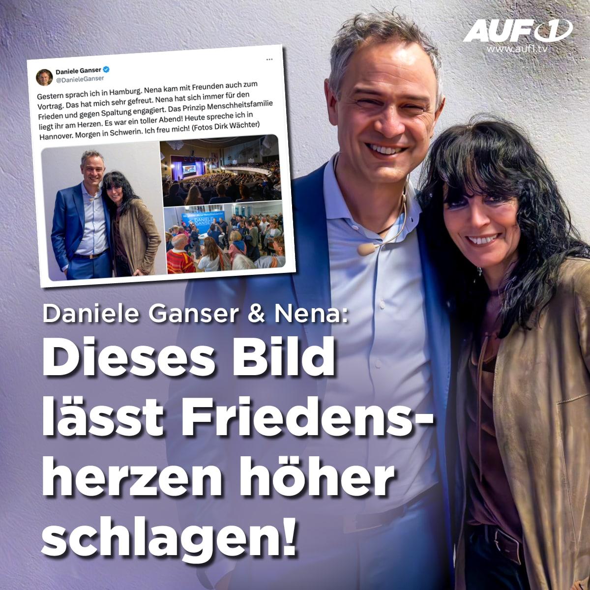 Dieses Bild lässt Friedensherzen höher schlagen: Die Musikerin und Friedensaktivistin Nena besuchte in Hamburg den Friedensforscher Daniele Ganser bei seinem Vortrag. „Das hat mich sehr gefreut“, schrieb er auf seinem X-Kanal (siehe Grafik).