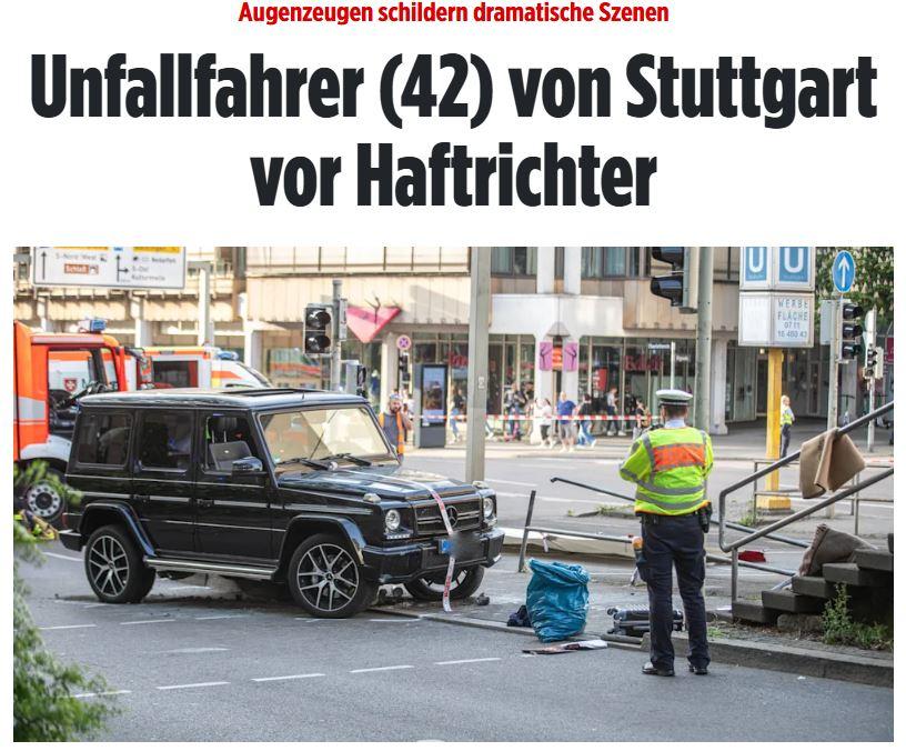 Ein Augenzeuge erklärte gegenüber der Bild-Zeitung: „Der Mercedesfahrer wollte mit hohem Tempo abbiegen, schaffte die enge Kurve nicht. Er fuhr auf die Fußgänger drauf.“ Ein weiterer Zeuge des Vorfalls sagte: „Das Auto fuhr die Treppe zur Stadtbahn-Haltestelle hoch. Dann setzte der Fahrer zurück, überfuhr die Menschen ein zweites Mal. Es war schrecklich!“