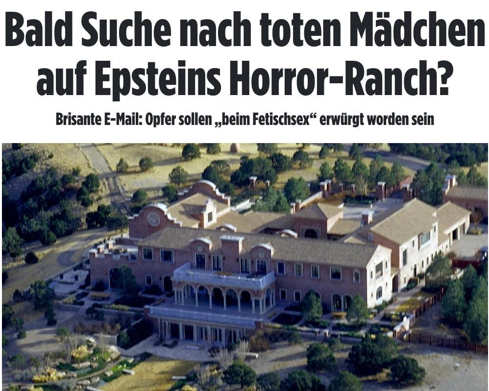 Die Epstein-Akten fördern immer mehr schockierende Hinweise zutage. Wie nun bekannt wurde, schrieb ein ehemaliger Epstein-Angestellter in einer Mail von zwei getöteten MĂ€dchen, die auĂerhalb der Epstein-Ranch verscharrt worden sein sollen. Die wohl minderjĂ€hrigen Opfer sollen wĂ€hrend bizarrer und gewalttĂ€tiger Sexualakte getötet worden sein.