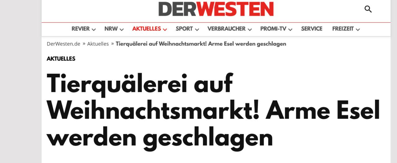 Erschütternder Vorfall auf dem Weihnachtsmarkt in Erbach (Hessen): Bislang unbekannte Täter haben die beiden Esel „Max“ und „Lily“, die dort in einem Gehege ausgestellt waren, brutal misshandelt. Ein Anwohner beobachtete gegen vier Uhr morgens, wie mehrere Personen den Tieren ins Gesicht schlugen. Erst durch die Rufe des Zeugen ließen sie von ihrer Tat ab und ergriffen die Flucht. Besonders tragisch: Die beiden Esel gelten als ausgesprochen zutraulich und haben sich den Quälern höchstwahrscheinlich freiwillig genähert. „Max“ und „Lily“ sind jedes Jahr Teil der „lebendigen Krippe“ auf dem Erbacher Weihnachtsmarkt. Die Täter konnten bislang nicht identifiziert werden. Obwohl die Polizei nach den Verdächtigen fahndet, verzichten sämtliche Medien bisher auf die Veröffentlichung einer Täterbeschreibung.