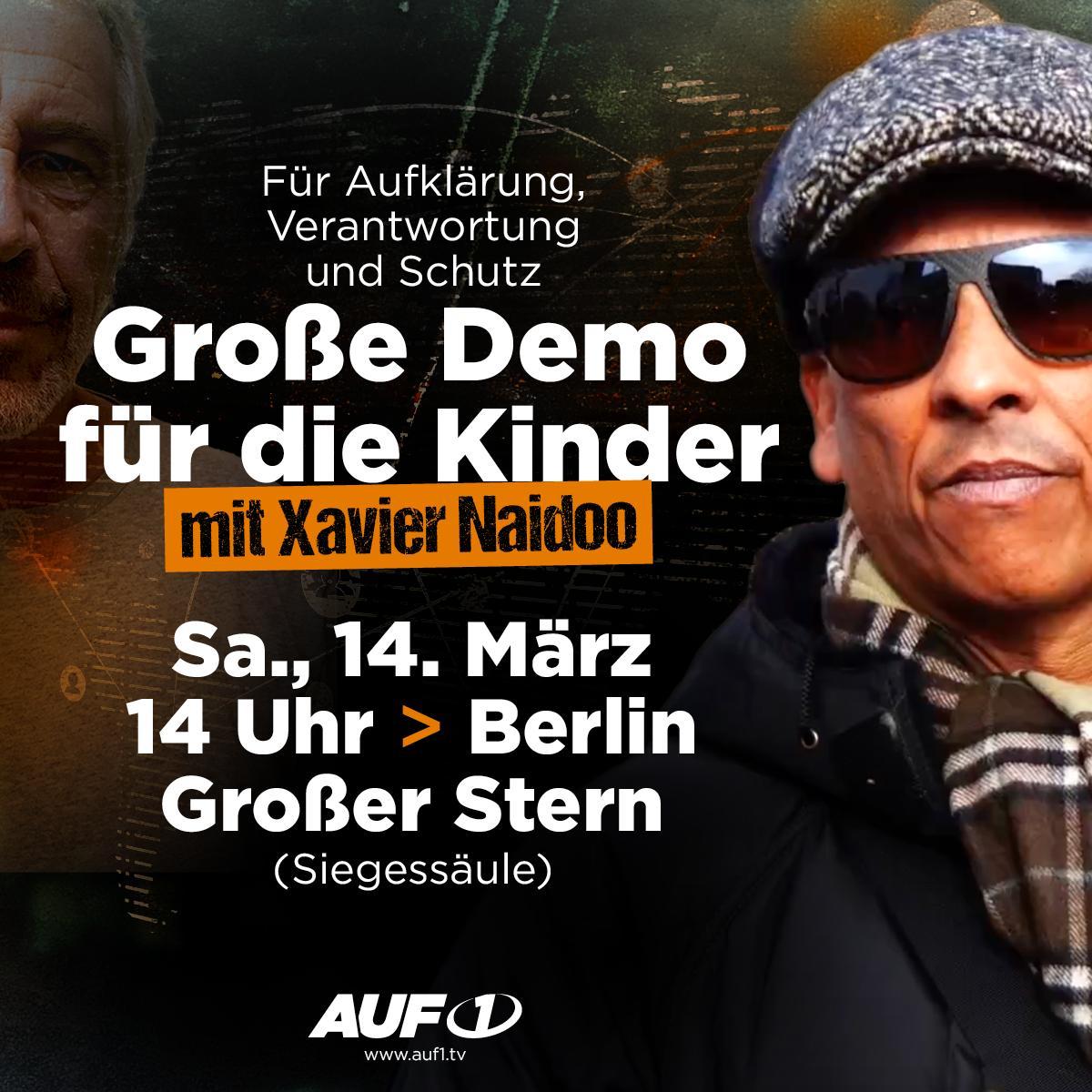 Im Schatten des Iran-Krieges wurde es leiser um die schrecklichen Machenschaften des System Epstein. Doch am kommenden Samstag regt sich Widerstand in der Bundeshauptstadt Berlin. Die Veranstalter rufen auf: Gemeinsam mit Xavier Naidoo auf die Straße – für den konsequenten Schutz von Kindern und Minderjährigen!
