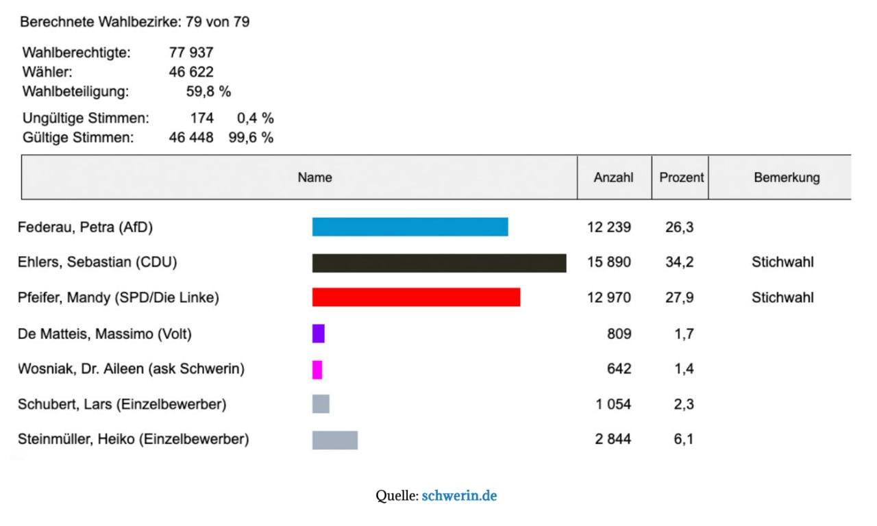 🗳 Oberbürgermeisterwahl in Schwerin: AfD verpasst Stichwahl nur knapp