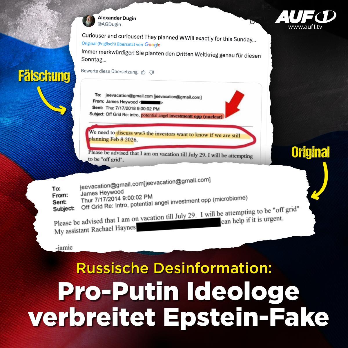Russische Desinformation:🚨Pro-Putin Ideologe verbreitet Epstein-Fake