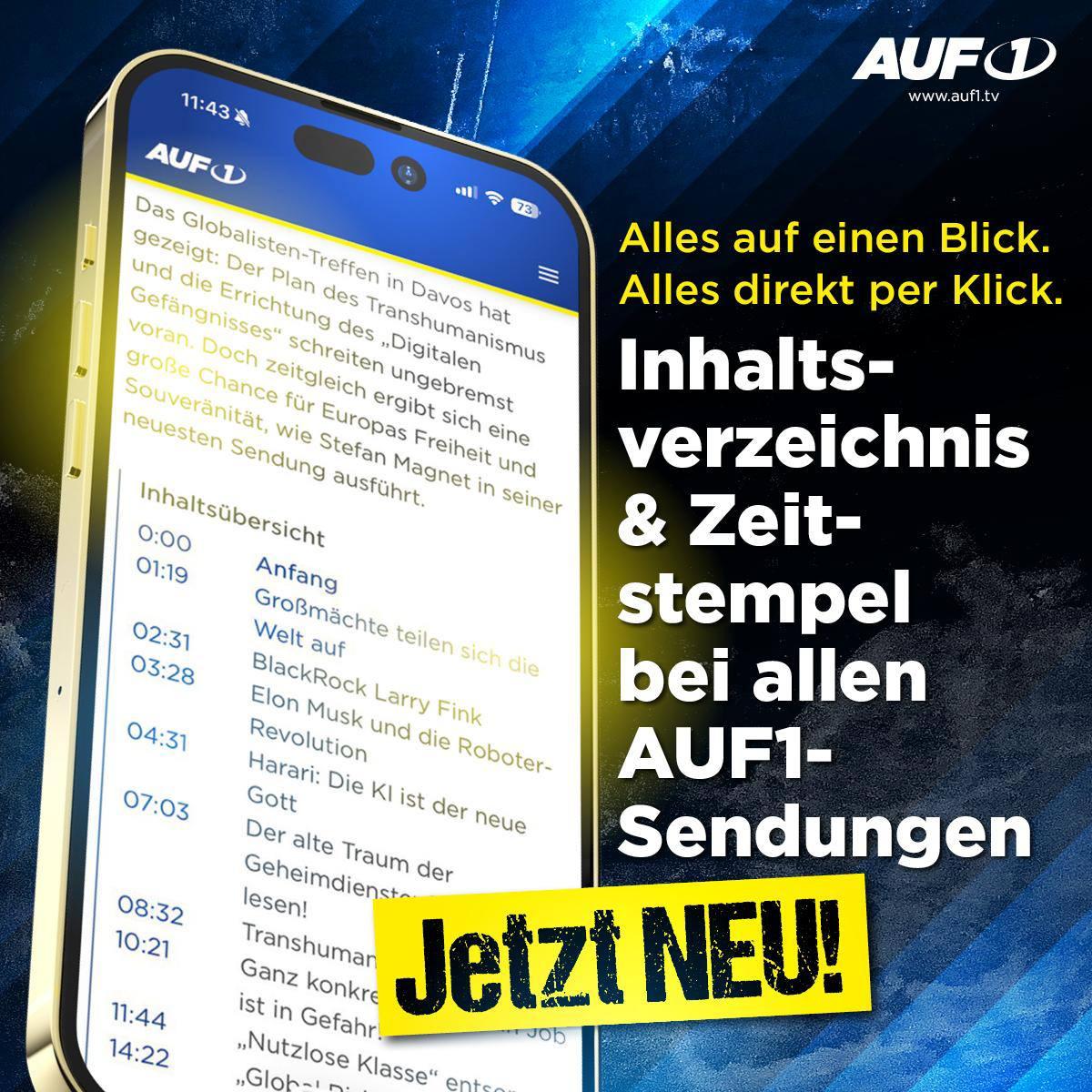 ⚠️⚠️Hier gleich bei der aktuellen Sondersendung von AUF1-Chef Stefan Magnet zum System Epstein ausprobieren: ➡️ https://t.me/auf1tv/17647