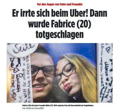 Fabrice fragte eine Frau, ob sie die bestellte Uber-Fahrerin sei. Kurz darauf rief diese ihren Ehemann. Der 25-Jährige soll mit den Worten „Wer hat meine Frau angemacht?“ sofort zugeschlagen haben. Fabrice brach blutend zusammen und starb am nächsten Tag an seinen schweren Verletzungen.